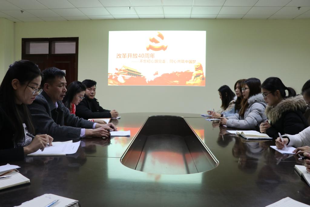 本科生党支部举行“庆祝改革开放40周年”主题党日活动,支部全体党员参加。会议由本科生党支部书记孙旭春主持。