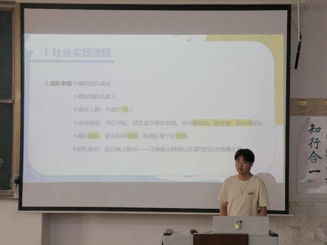 图为社会实践部干事潘治钱讲解社会实践流程