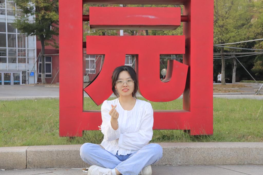 图为保研师姐在校徽石前