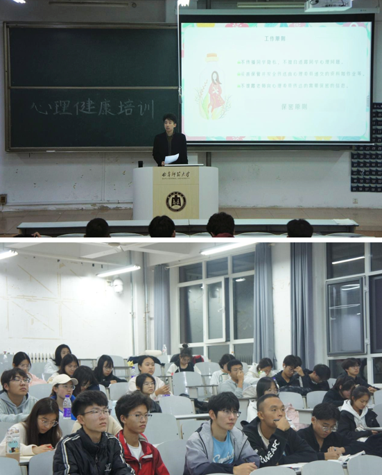 本次培训从四个方面展开。一是在角色定位方面,袁铭泽强调,明确个人角色对于同学们理解自己的身份至关重要,它能够促进同学之间的有效沟通,并帮助他人解决问题,有助于个人品质的全面提升;二是在工作原则上,他对解决同学们心理难题时所坚持有效原则进行介绍;三是在危机信号识别方面,他明确指出在哪些特定情境下同学们可能需要心理辅导,指导舍长和心理委员如何敏锐地察觉并妥善处理同学们的心理健康问题;最后是在工作技巧部分,他指出了同学们可能面临的各种问题以及相应的解决策略。