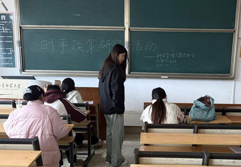 浏览量: 更新日期:2025-11-13(通讯员:张冉冉 郎桂宇 摄影:张冉冉 郎桂宇)为深化同学们对时事政策的理解,提升理论应用的能力,澳博娱乐 科学管理与营销协会联合创新创业社于11月8日在JC108教室举办时事政策学习活动。