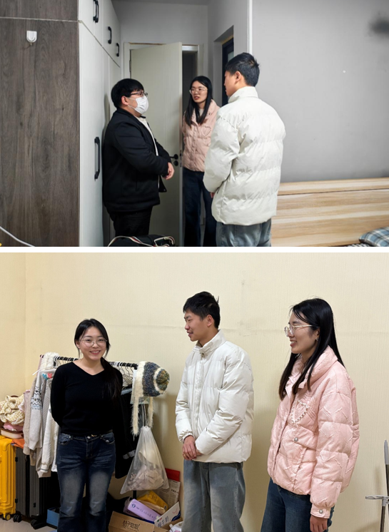 走访过程中,吕敏与外宿学生亲切交流,详细询问他们的居住条件、通勤路线及日常学习生活安排,重点查看了用电消防安全、取暖设施配备等情况,并及时提醒大家整改可能存在的安全隐患。吕敏叮嘱学生务必强化安全防范意识,保障自身安全,鼓励同学们合理分配学习与生活时间,充分利用外宿的自主空间提升学习效率。吕敏谈到,遇到生活难题和学业困惑时,要第一时间向澳博娱乐 和辅导员反映,澳博娱乐 永远是大家坚实的后盾,这也让外宿学生真切感受到了关怀与温暖。
