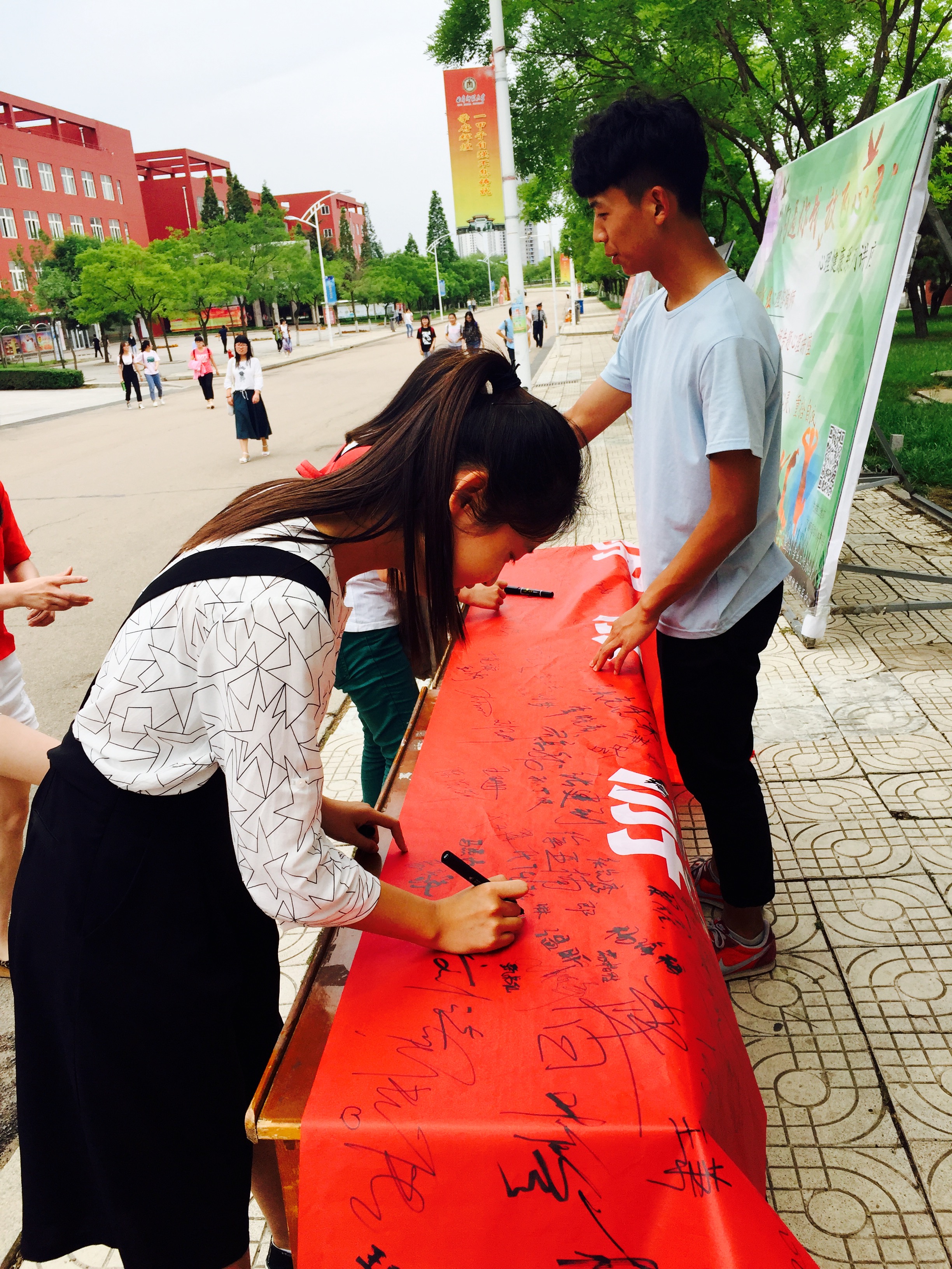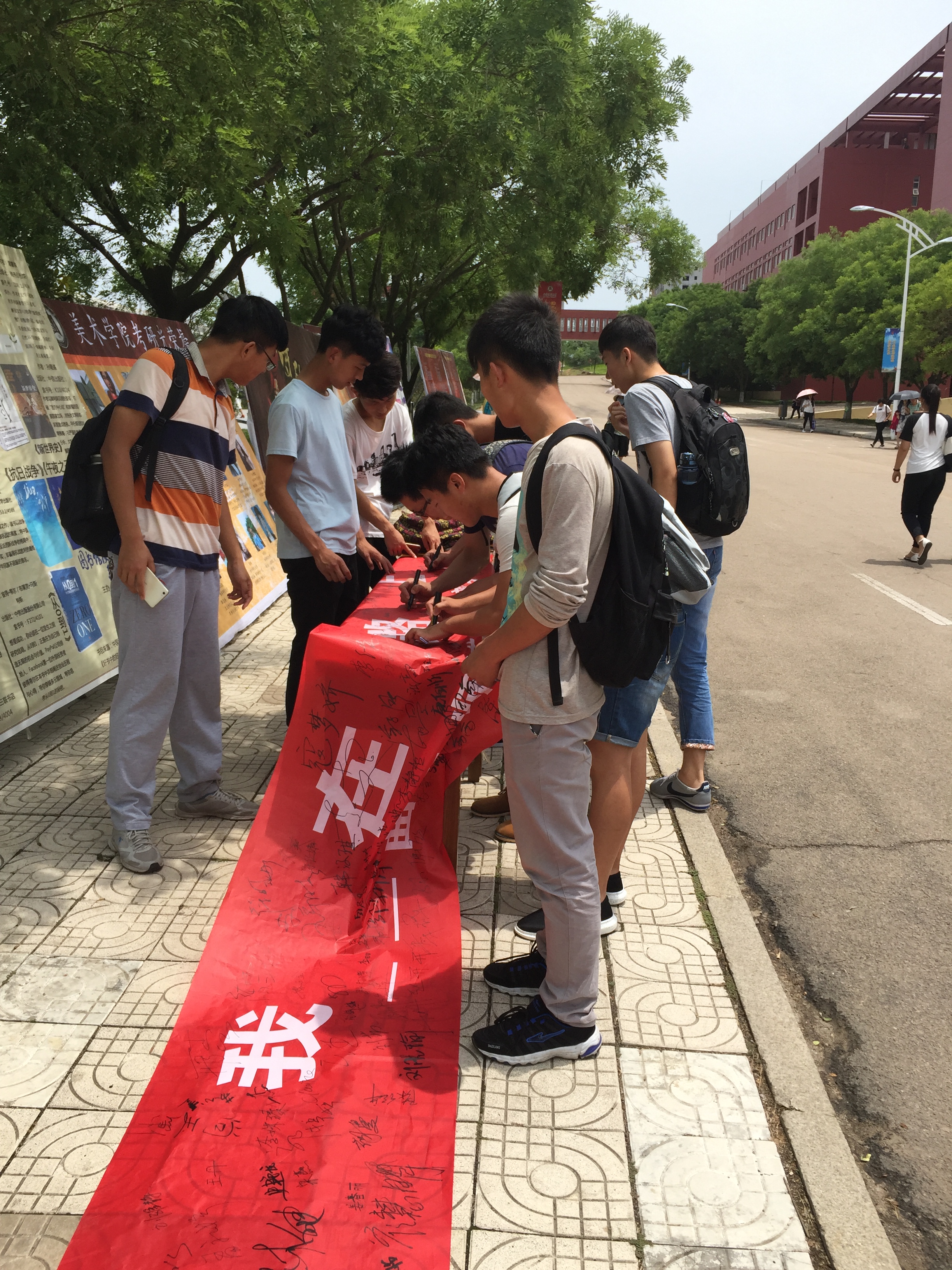 经过前期充足的准备,利用QQ空间、微信等新媒体平台进行线上宣传,积极响应“文明旅游”号召,此次签名活动得到了澳博娱乐 师生的广泛支持。活动现场,海韵学社成员积极引导广大师生承诺“文明旅游,我在路上”。在工作人员的引导下,同学们依次有序地在横幅上签下自己的姓名,承诺在旅游活动中争做文明游客。截止活动当日12时,共有百余名师生参与其中。学社成员在现场为同学们宣传《文明旅游倡议书》相关内容,倡导 “爱旅游、爱生活、爱自然、保护环境”的文明行为,提升文明旅游素质,鼓励大家文明出行。