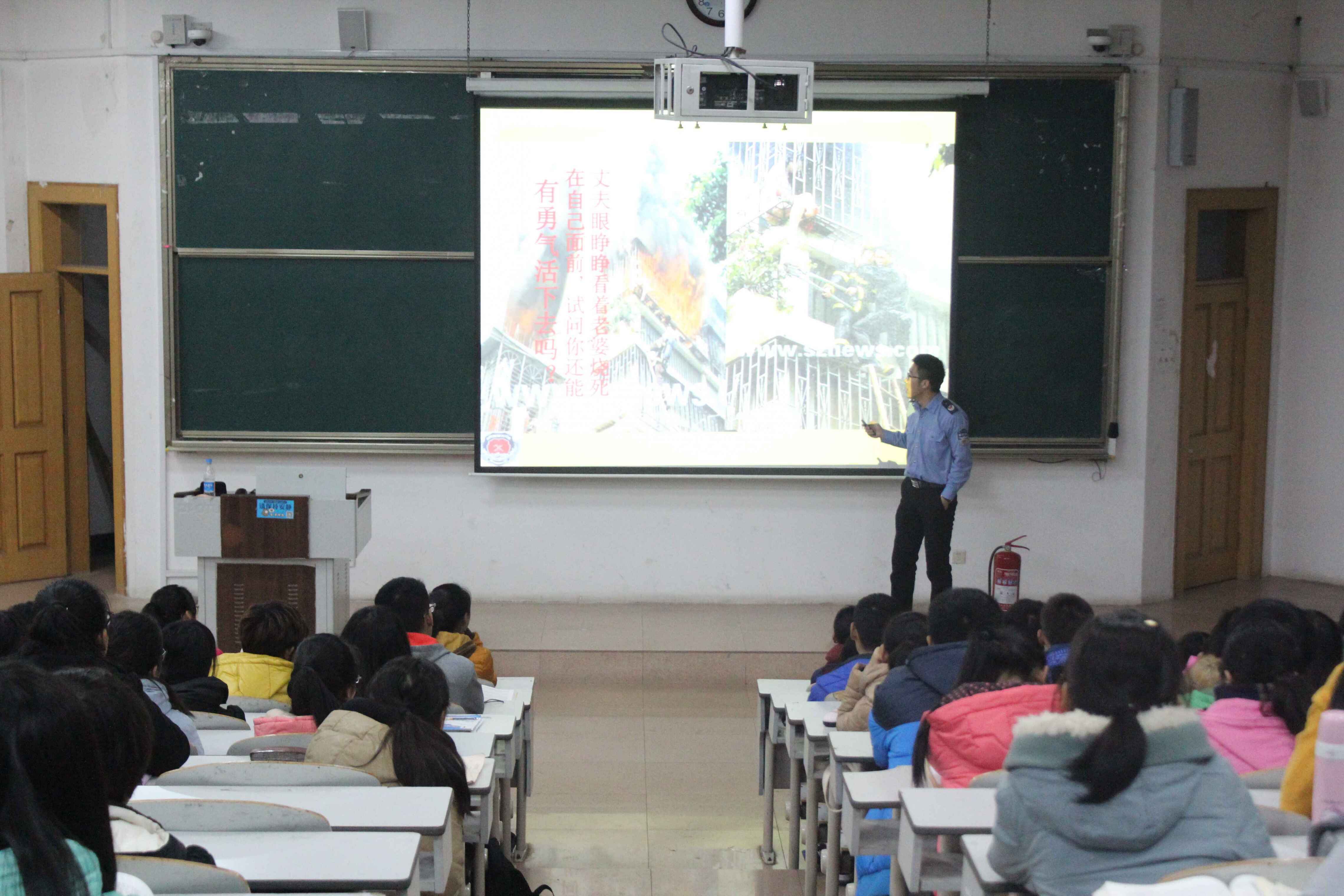 为增强澳博娱乐 学生的安全防范意识,12月9日16:30,澳博娱乐 消防知识培训讲座于JE101顺利举行。安居防火培训中心高级教员王镇为澳博娱乐 学子进行了消防知识培训,澳博娱乐 团总支书记、2015级辅导员宋秀娟参加了此次培训。
