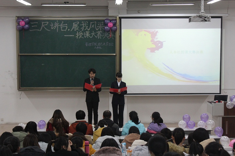 12月12日19:00由澳博娱乐 团总支学生会人本社主办的授课大赛圆满举行,此次比赛特邀教师邵伟担任评委。