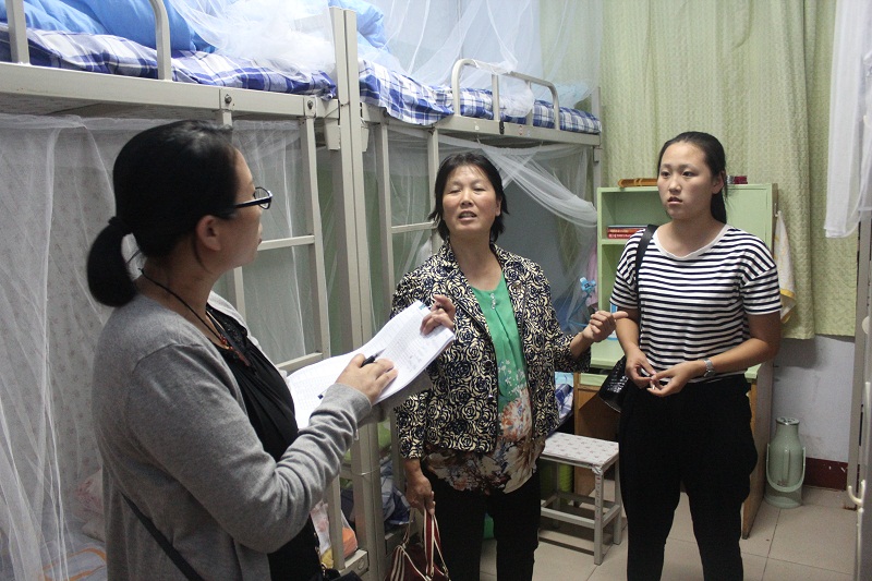 为深入了解澳博娱乐 新生入学情况,帮助新生尽快适应大学生活,9月12日19:00,澳博娱乐 党总支副书记赵杰、团总支书记宋秀娟进入宿舍对新生进行看望慰问。团总支副书记姜春婷、学生会主席李滟泽也一同参加此次走访。
