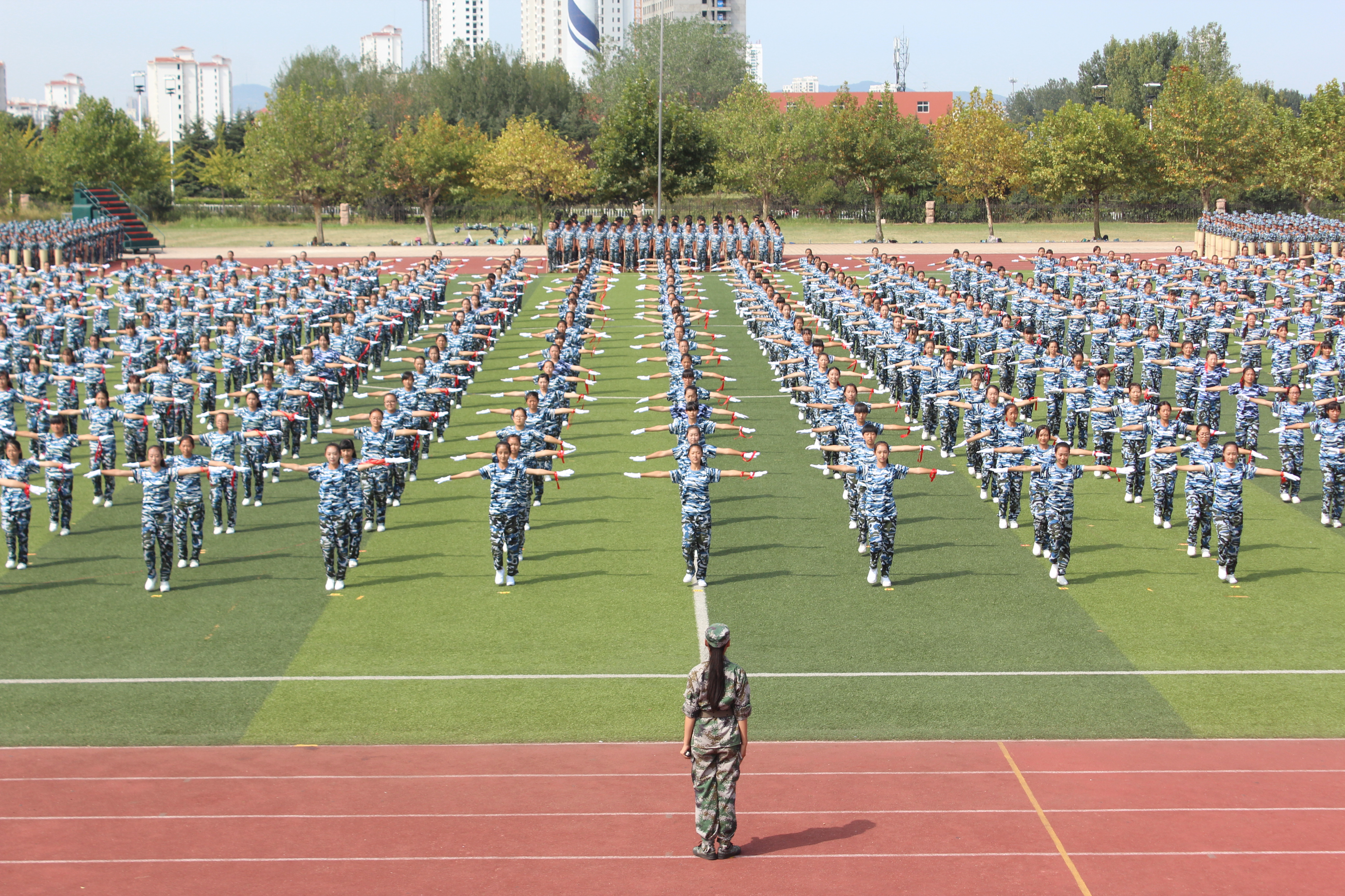 取得了优异成绩,获得“内务卫生先进单位”荣誉称号,五营二连荣获“先进连队”称号。2015级辅导员宋秀娟老师获得“军训优秀指导员”称号。韩李、夏鑫获得优秀排长称号,寇利利等7人获得优秀班长称号,宋涛等46人获得军训优秀标兵称号。