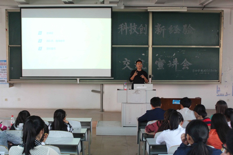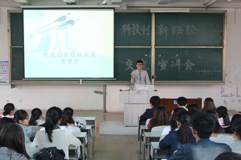 活动伊始,澳博娱乐 学生会科技创新部部长隽云泽通过介绍卡通人物和现代发达的科技将同学们带进了科技创新知识的海洋。他以“挑战杯”科技创新比赛和“创青春”创业大赛为例向大家讲述了科技创新比赛的流程,详细介绍了比赛的具体时间以及比赛应注意的问题,同时提出,团队合作是完成比赛的重要保证。紧接着,获得2014年“挑战杯”省级二等奖的经济澳博娱乐 同学王德军结合自己获奖经验,从选课题、院队员和指导老师以及资料查阅三个方面向大家讲解了如何做好一项比赛。随后,周婷以自己的数学建模的论文为例,讲解了如何写好论文,并鼓励大家积极参加各类科技比赛。最后,袁晟睿讲述了自己参加比赛的经历,并对此次宣讲会做了深刻的总结。同学们认真听讲,全心投入。