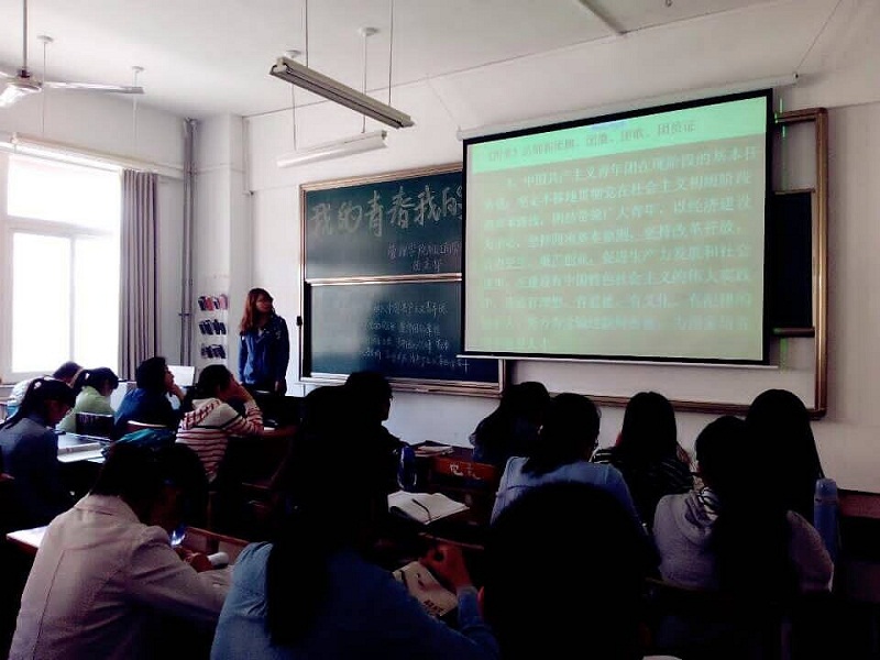 此次活动由了解五四青年节、重温入团仪式两个环节组成。在王丽表达了对14级工商班全体同学的青年节祝愿后,活动正式开始。首先,同学们通过ppt了解了五四青年节的相关背景及由来。接着,王丽就中国共青团相关知识为大家进行了详细地介绍,以问答的方式向同学们展示了有关团旗、团徽、团歌的知识。随后,同学们欣赏了慷慨激昂的共青团歌,一起进行了共青团歌地学习。最后,全体工商班同学起立宣誓,重温了入团誓词。同学们以饱满的热情参与了此次活动,达到了很好的教育效果。