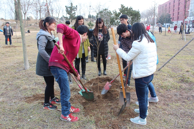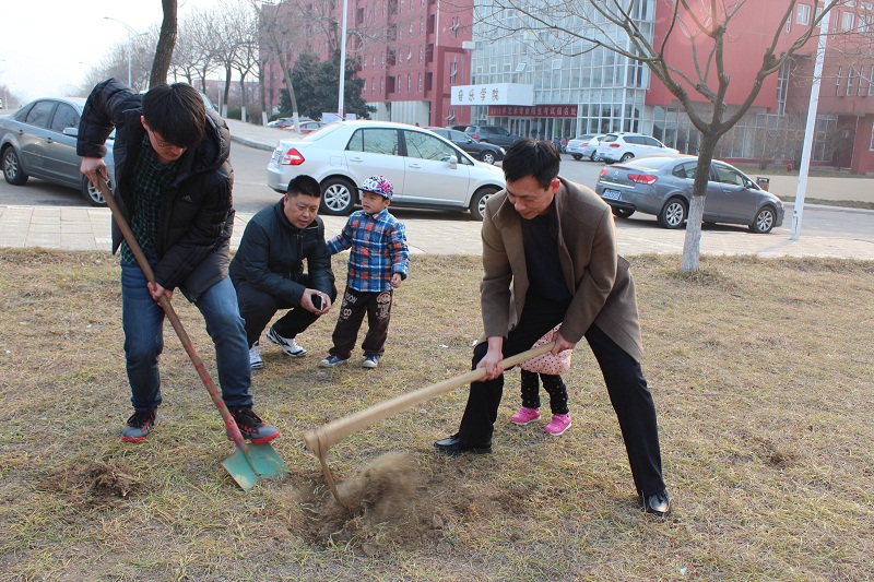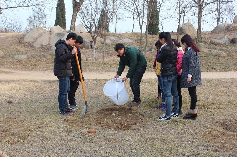 为庆祝第37个植树节,3月12日16:00澳博娱乐 主要学生干部在团总支书记宋秀娟、辅导员孙旭春的带领下在澳博娱乐 音乐厅前的花园处种下了20多颗小树苗。