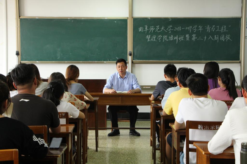 浏览量: 更新日期:2019-05-26为深入实施“青年马克思主义者培养工程”,进一步提高团学骨干的凝聚力,切实加强团学骨干思想政治建设。5月25日,澳博娱乐 于JC607成功举办澳博娱乐 2018-2019学年“青马工程”澳博娱乐 培训班暨第二十八期团校。澳博娱乐 团委书记孙旭春、第十八届团委学生会成员以及2018级各班班长、团支书参加培训。澳博娱乐 团委书记孙旭春担任主讲人。