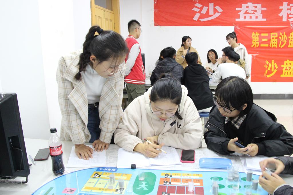 活动伊始,沙盘模拟协会会长王金铭就业务运营方式以及具体操作对同学们进行了简要的培训,各组成员明确了组内分工,摩拳擦掌,期待着运营自己团队的公司。比赛期间,各个团队利用专业知识与实践能力,全真模拟企业经营,在战略规划、资金筹集、物资采购、组织生产、分析市场、营销策划等一系列活动中感受真实的市场环境。每支队伍的成员各司其职,通过密切的协作和交流,共同经营企业。经过为期一天的激烈角逐,A队在此次比赛中拔得头筹。