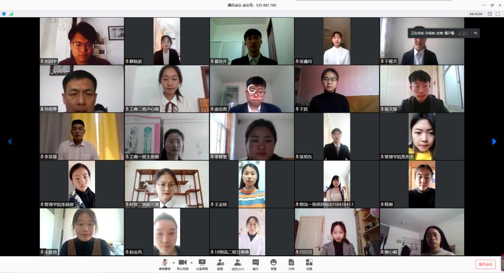 此次线上竞选分为限时演讲和现场答辩两个环节。竞选者根据自身任职经历和工作经验,简洁明了的阐述自身竞选优势和对所竞选职位的认识以及工作展望。四位老师结合竞选者的表现,有针对性地提出问题,分部门提出多角度指导和建设性建议,对选拔过程进行严格把关。最后,团委书记孙旭春对团委学生会为澳博娱乐 学生工作的付出表示肯定,并强调学生干部要协调好学习与工作的关系,在提升专业素养的同时也要不断提高工作能力。