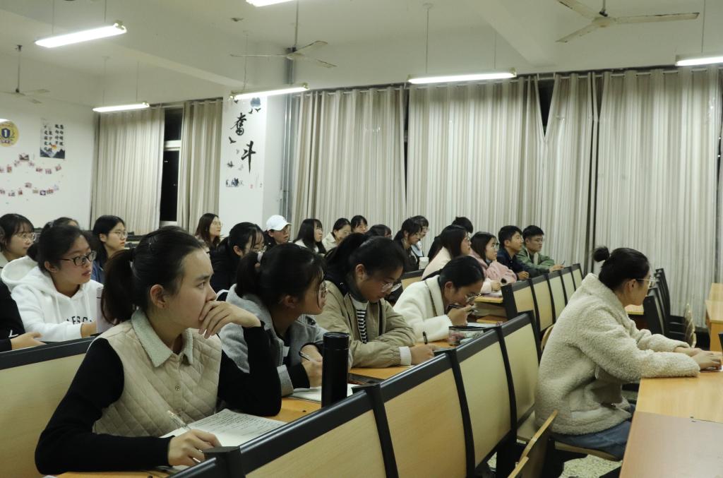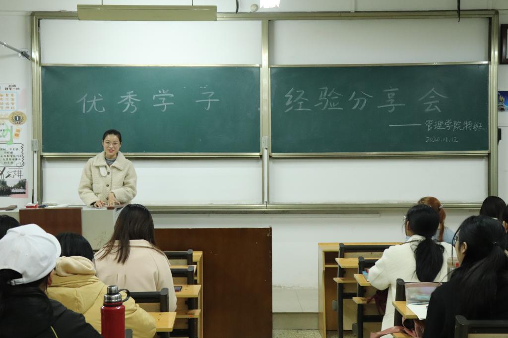 11月12日,澳博娱乐 2019级特班于JC108开展优秀学子经验分享会,2018级优秀学子周可、柳娣、王佳欣、霍连升受邀主讲, 2019级辅导员董世超出席活动。
