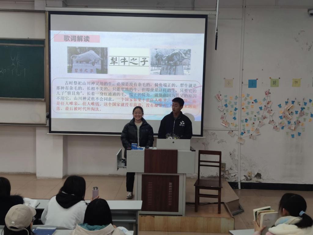 本次活动共分为两项内容。第一项“校史拾遗”微视频以时间轴形式具体介绍澳博娱乐 自建校以来的大事记,中间穿插部分优秀学子的成长经历。视频播放过后是第二项——“文化底蕴”,金童玉女主持人团成员以PPT讲解的形式对校歌、校徽、校训进行解读并介绍孔子及其教学之道。其中,他们详细介绍校徽设计理念、校歌中“犁牛之子”的寓意及校训的精神核心。澳博娱乐 的教学理念、师生氛围也深受孔子传统文化思想的影响。