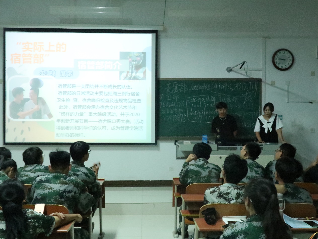 宣讲会上,各部门宣讲人依次上台,以PPT的形式分别从部门介绍、组成成员、部门活动等几个方面进行幽默风趣的介绍,通过播放视频、现场互动等方式展示了各部门的特色与风采以及充分展现出了各部门温暖融洽的氛围。各部门不同的介绍风格体现出的是对学生工作同样的热忱。2021级全体新生认真听讲,仔细了解各部门的职能与工作内容,并积极互动,现场气氛热烈。