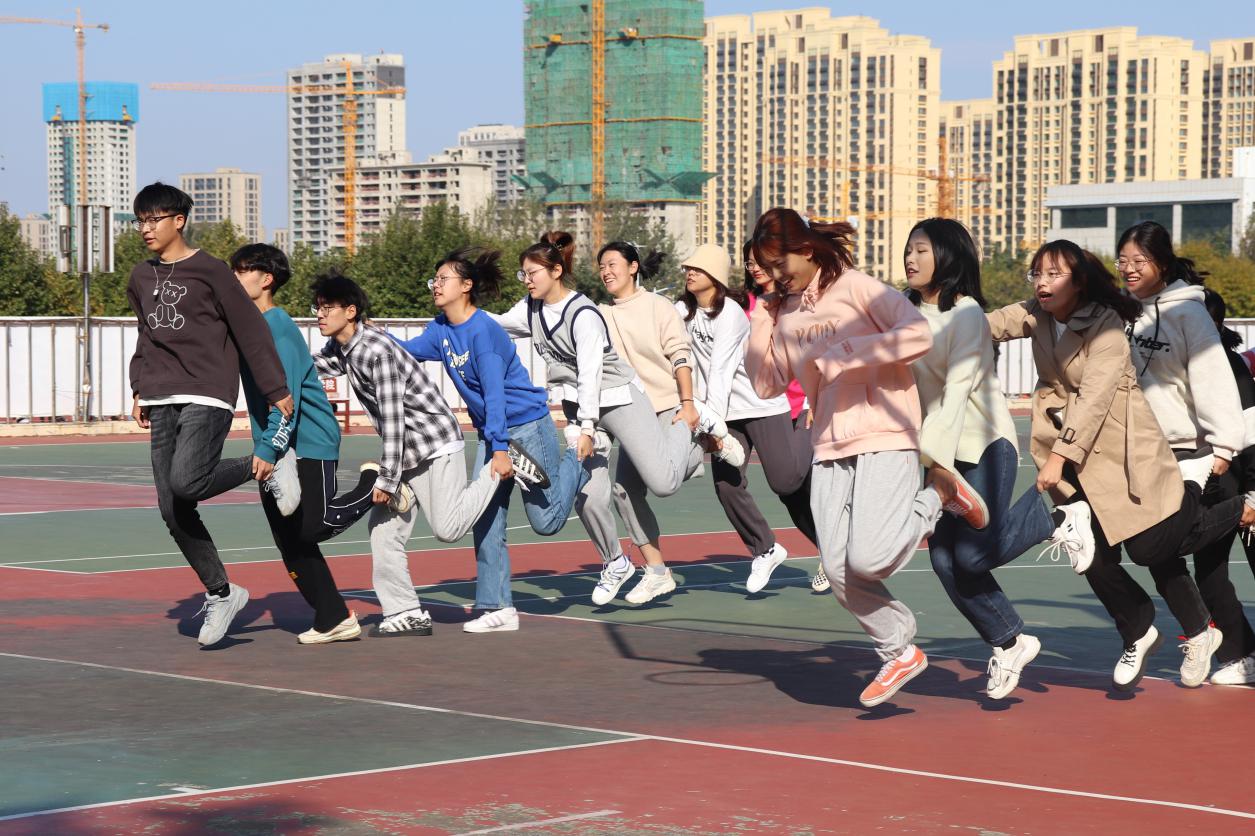 活动旨在通过游戏的形式宣传心理健康知识,寓教于乐,进一步培养学生积极向上的性格。第一个游戏“动力小火车”在同学们的呐喊声中拉开帷幕,各队成员们手脚相连,口中喊着有力的口号,单脚跳跃向终点进发。第二个游戏考察同学们的反应能力和配合能力,在听到口令时迅速形成“松鼠和树”组合。队员们有条不紊,配合默契,享受着愉快又刺激的比赛瞬间。最后一个游戏“爱的抱抱”将本次活动推向高潮,各个成员随着轻松愉快的音乐时而围成圆圈,时而抱在一起,在欢声笑语中拉近了彼此的距离,在悄无声息中进行了一场心灵的慰藉。