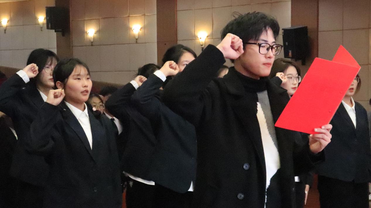 图为领誓人带领宣誓