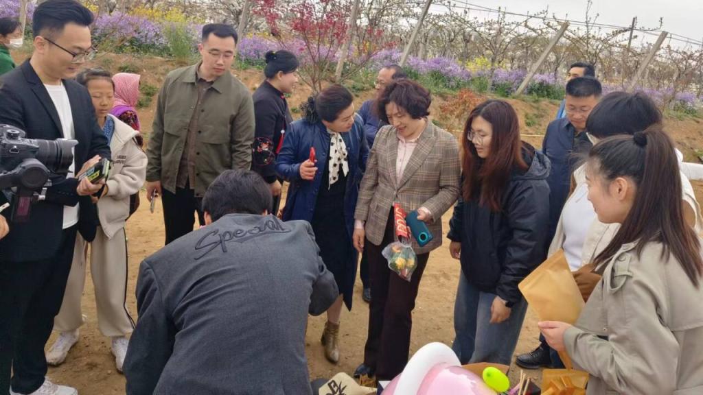 活动中,沙盘模拟协会的学生充分发挥组织能力和创新思维,巧妙地将气球和非遗漆扇与梨花节的主题相结合,打造独具特色的活动亮点,合作解决市场营销、品牌策划、活动管理等方面的实际问题,通过精心策划和推广,获得了大量游客的关注与参与,不仅增强了活动的吸引力,也为南湖镇的文化旅游事业注入了新的活力。