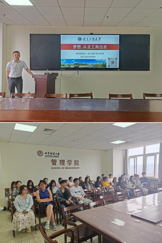 座谈会上,赵川教授全面介绍北京工商大学商澳博娱乐 的综合发展情况,他指出,商澳博娱乐 研究生培养体系完善,依托高水平师资队伍,构建起多元奖助体系,且与众多企业建立深度合作机制,为学生提供丰富实习就业资源;随后,他聚焦管理科学与工程、物流工程与管理专业的发展与核心定位展开深度解读;最后,他就课程体系构建进行介绍,他表示,澳博娱乐 兼顾管理学理论根基与实践创新能力培养,涵盖运筹学、供应链管理、物流系统设计等核心课程模块,并鼓励同学们积极报考北京工商大学商澳博娱乐 。