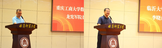 重庆工商大学数学与统计澳博娱乐 副院长龙宪军教授和临沂大学物流澳博娱乐 院长李晓东教授分别宣读了两澳博娱乐 写给澳博娱乐 成立25周年的贺词。他们表示,愿与曲阜师大澳博娱乐 进一步加强合作、携手并肩、共同进步,为祖国的教育事业做出更大贡献。