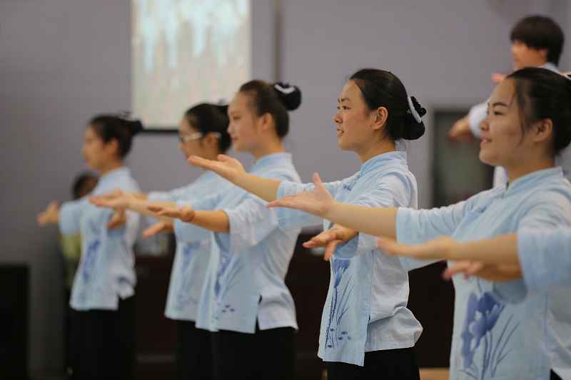 “文化之旅”三下乡服务队自集队以来,便投入到了紧张有序的工作准备状态,队员们分工合作、各司其职。7月27日至30日期间,队员们统一进行了手语操培训,三天之内学习了《礼》、《跪羊图》、《厚德载物》等十余首手语操。与此同时,队员们也积极加入到黄河大放生的队伍中,在队员们的帮助下,一条条鱼儿重获自由,再返黄河。7月30日至31日,跟随主办方到达夏令营主讲阵地-垦利一中后,队员们迅速投入到了忙碌而又充实的会场准备工作。准备工作完成不久,队员们便开始引领学员们进行夏令营的报道工作,引领期间不忘耐心帮其答疑解惑。8月1日至8月6日,夏令营开课时间,表演手语,食堂打饭,准备茶水,打扫卫生等类似的事情每天队员们都会上演。虽然其间睡眠时间少、工作量大,但是队员们累在其中,乐在付出。汇报演出时,队员们身穿汉服,为学员们献上了一出大气磅礴的汉唐歌舞《重回汉唐》,衣袂飘飘,矫若游龙,博得了学员们的阵阵掌声与欢呼。6日至7日,送走了全体学员们后,队员们有条不紊地进行着夏令营的收尾工作,同时,也迎来了此次“文化之旅”三下乡社会实践的尾声。