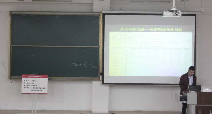 王老师以四个问题为主线,旨在通过例题的讲解向同学介绍如何应用MATLAB进行求解与仿真。首先,王老师结合运筹学详细分析了最小费用的最大流问题,以水泥配送为例,然后联系实际介绍最优环游问题,教授同学们如何正确处理时间、方向、票价来安排旅游最优路线。随后,王老师依次讲解了单机作业排列排序问题以及流水作业排列排序问题,并穿插着介绍了枚举法的应用。过程中,王老师一直坚持用MATLAB实际操作,借此向同学们详细演示运用MATLAB求解的过程,在座同学无不受益匪浅。为进一步强调运用程序解决问题的重要性,王老师提议大家日常多加实践,亲自动手搜索源代码。报告最后,王老师对同学们提出了些许期望,综合来说就是希望同学们能够运用逻辑思维能力提高分析问题和计算编程的能力。