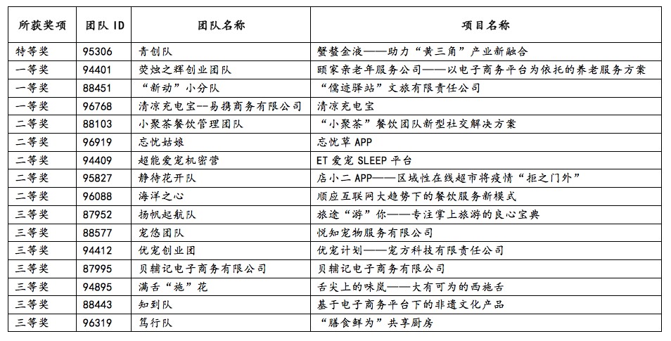 据悉,本届三创赛共有来自全省36个高校2160支队伍共计12000余名师生参加校赛,根据大赛相关规则要求,省赛组委会分别举行了省赛初级赛、中级赛和高级赛。其中省赛初级赛共有1150支队伍参加,中级赛参赛队伍160支,高级赛参赛队伍20支。经过三级赛事全体评委的认真评审,共产生省赛冠、亚、季军各一项,特等奖45项、一等奖115项、二等奖230项、三等奖345项,合计740个奖项。