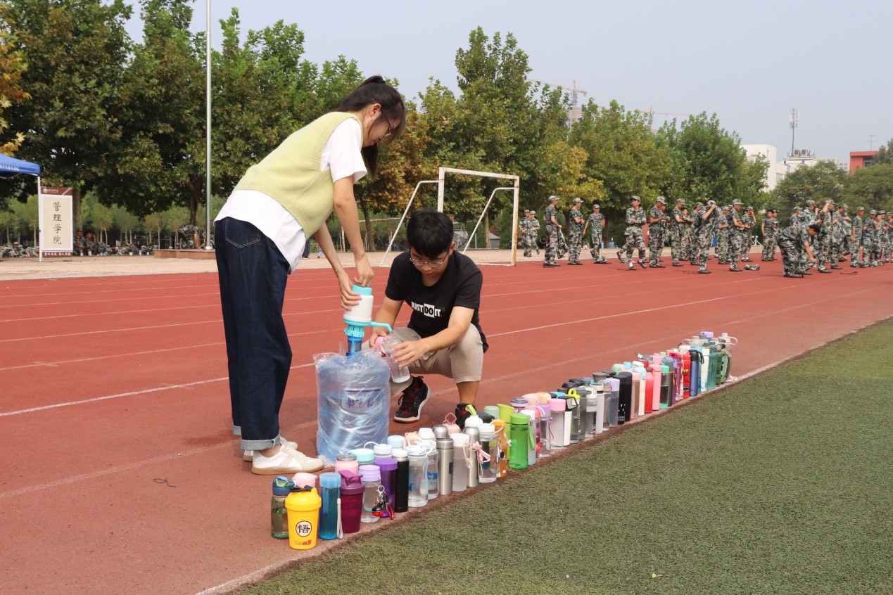 正式进入军训生活的新生们军姿飒爽,积极地迎接着人生挑战。训练场下的后勤人员坚守岗位,时刻待命,在背后默默地为新生们服务。