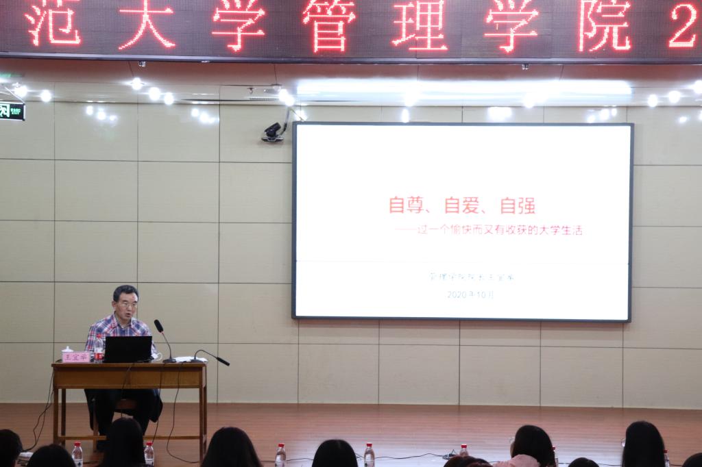 为了让新生更好的适应大学生活,明确大学规划,10月10日,澳博娱乐 院长王宜举做“自尊、自爱、自强——过一个愉快而又有收获的大学生活”主题报告,澳博娱乐 辅导员李静琪、董世超、董晓宇参加活动,澳博娱乐 第19届团委学生会及2020级全体学生与会聆听。报告由党委副书记赵杰主持。