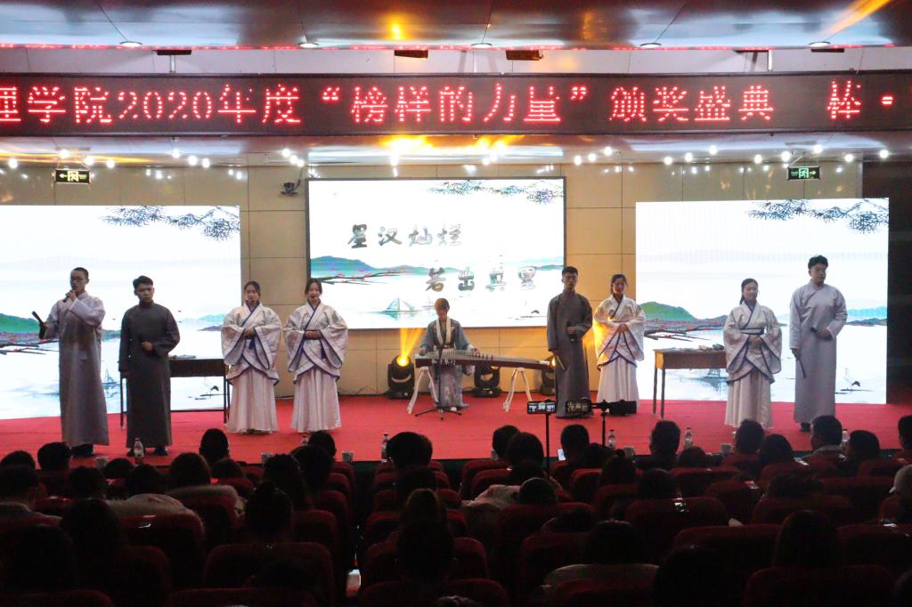 盛典现场,颁奖与文艺节目表演交替进行,古文诵读、歌舞表演影子戏及情景剧等丰富多彩的表现形式为获奖同学祝贺,也为在场师生呈现了一场精彩绝伦的视听盛宴