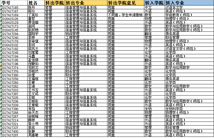 经过澳博娱乐 研究和组织17级转入学生笔试和面试,以下汇报表上报教务处审核。