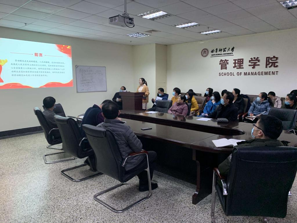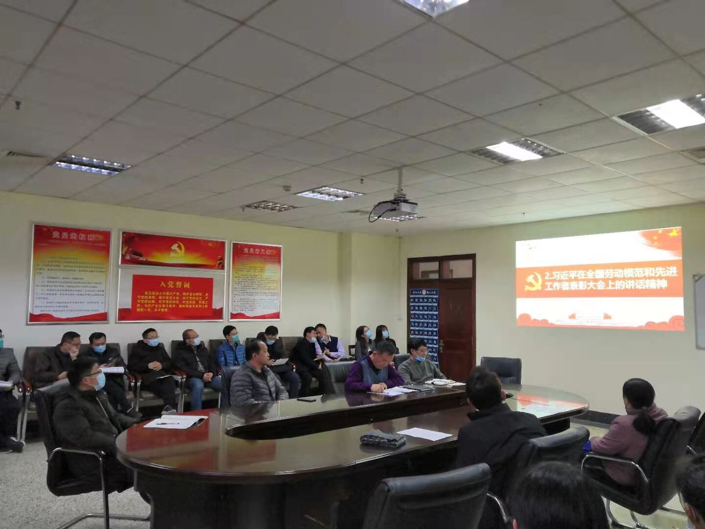 12月9日,澳博娱乐 全体工会会员于JC819集中学习习近平总书记在全国劳动模范和先进工作者表彰大会上的重要讲话。会议澳博娱乐 分工会主席王琳主持